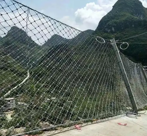 1、具有柔性和阻遏强度 被动防护网系统的柔性和阻遏强度足以吸收和耗散落石的预计冲击动能,消能环的规划和选择能够进一步进步系统的抗冲击性能。与刚性阻遏和砌浆挡墙相比,改变了原有的施工工艺,减少了工期和资金,系统的柔性保护和阻断强度足以吸收和松散传递石的冲击动能,减压环的规划和选择使系统的冲量进一步进步。适用于建筑设施旁有缓冲带的高山、峻岭,能够阻遏建筑设施的岩崩、飞石、雪崩、泥石流,避免灾祸对建筑设施的损坏。 2、开放式系统便利转移 被动防护网的柔性结构设计,各部分、部分受力和整体受力调和,避免了部分应力集中和防护网开裂的现象,下降了螺栓等构件的要求和标准,根据